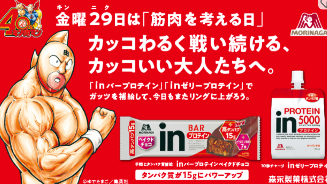 プロテイン補給食品の広告ですが私も本部ジム・健ちゃんに頂いてからお気に入りで捕食やおやつとしてよく食しております。