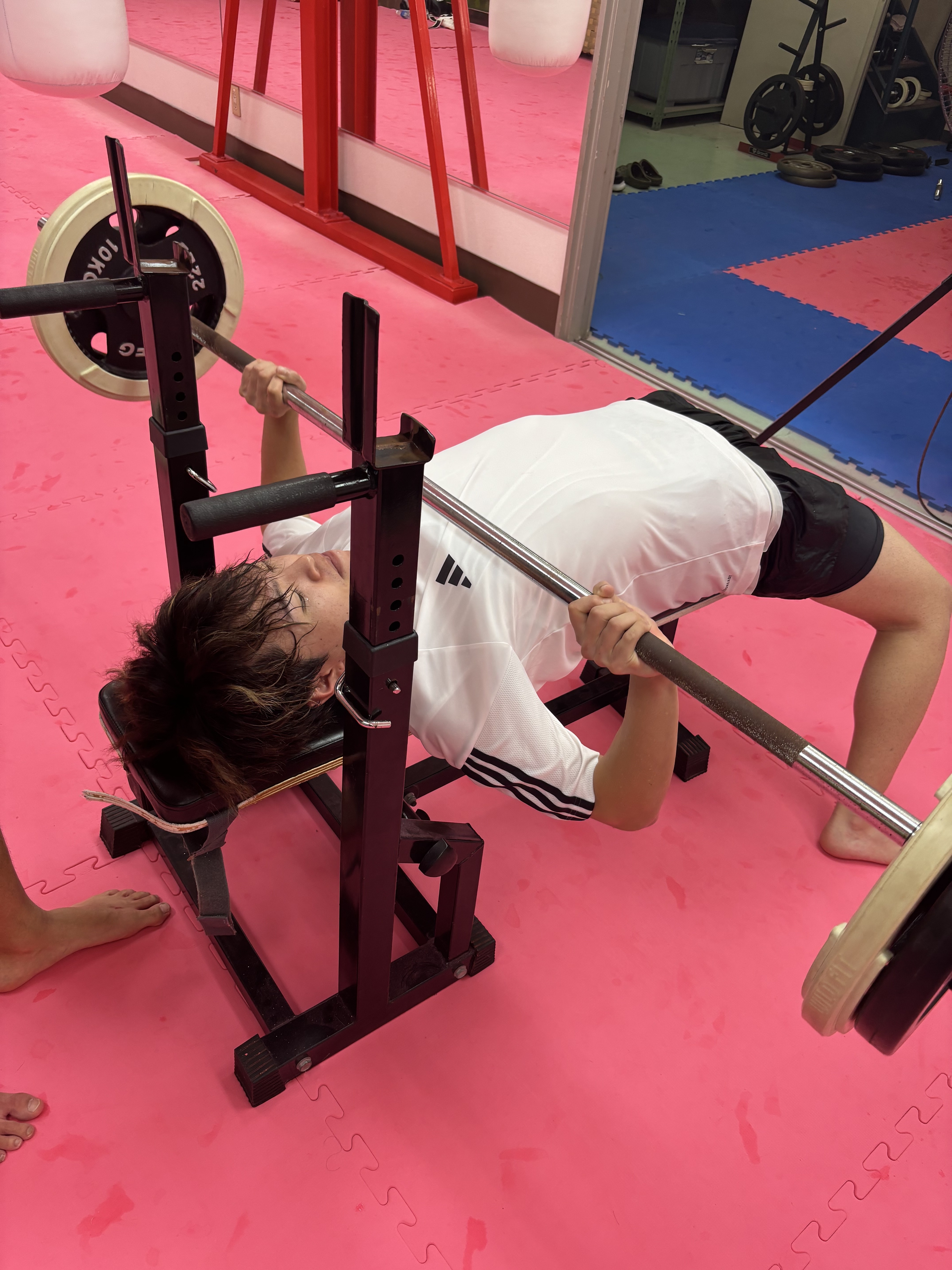 そこで現在は普段の通し練習が終わった後ベンチプレスを行い筋力強化を行なっています。